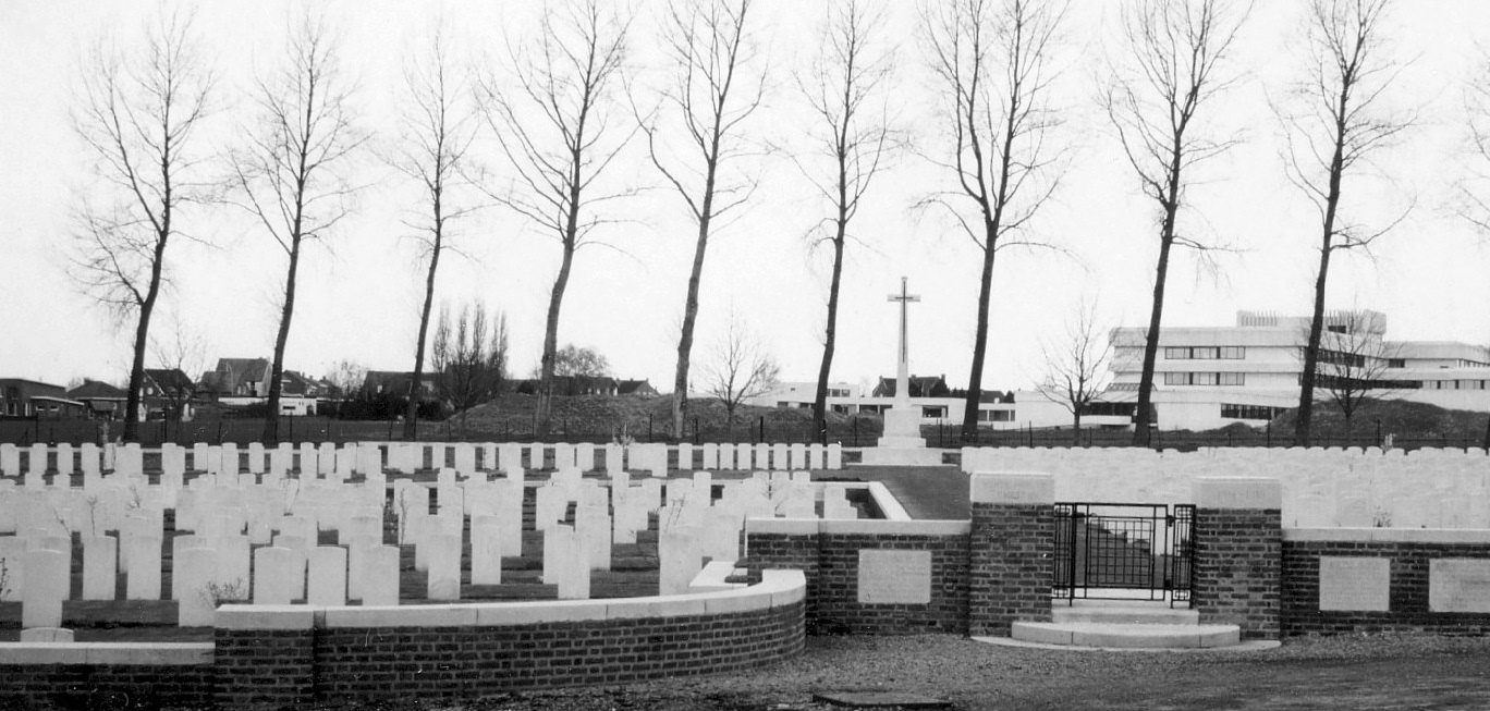 Ned was buried on the night of 19 December in Cottage Garden Cemetery, close to the main street in St Jean, the village halfway between Ypres and Wieltje. It is not clear when his parents were told where he was buried ─ in February all they were given was a military map reference for the location (“St Jean, ref to map sheet 28 Sq. C.27.d.3.4”). The burial was conducted by the Rev. Kinlock Jones, of 71 Brigade. Forty-four soldiers from the UK and one Canadian were buried here during 1914-15. There is a photograph showing a wooden cross with three metal strips on the cross-piece ─ Ned’s name and number, unit, and date ─ just legible. There is another grave adjacent, a rough brick path by the crosses, a wire fence marking the edge of the cemetery, and a ruined building beyond. On the upright of the cross are the initials GRC (Graves Registration Commission); the GRC was established in 1915, becoming the Imperial (now Commonwealth) War Graves Commission in 1917. By then the provision of photographs of graves when requested was an established service, and the photograph was certainly taken before the end of the war, but to add the information “Nearest Railway Station: Ypres” was absurdly optimistic.